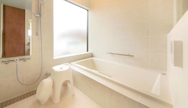 ウッドデッキから繋がる浴室