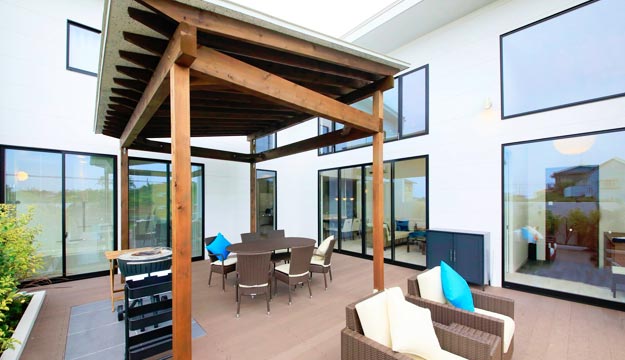 パーゴラで雨天でもBBQが楽しめます。
