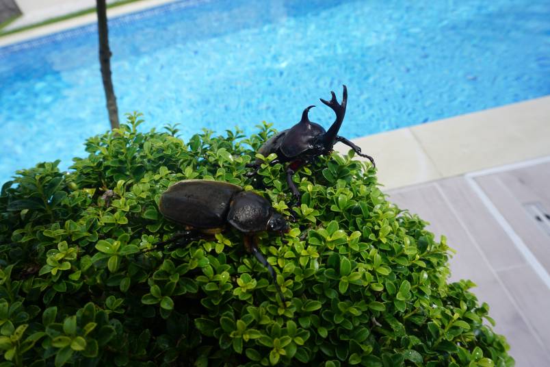 きょうは、ヴィラに遊びに来たカブト虫のカップルをご紹介させていただきます!
